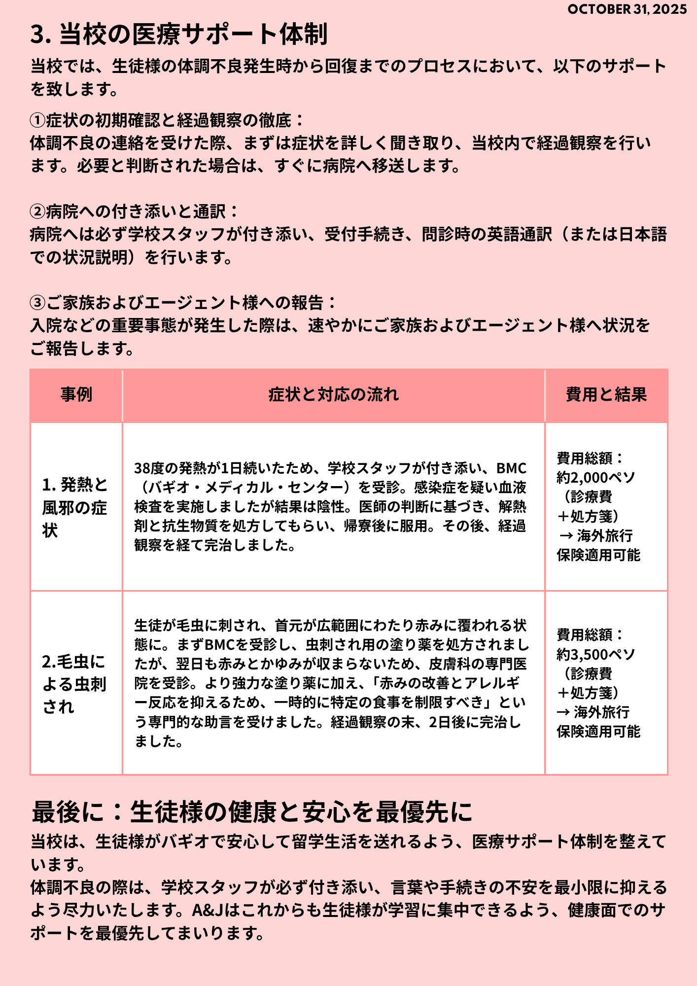 バギオ留学中の「緊急時の医療サポート体制」について 2025年10月31日号 メインキャンパスニュースレター